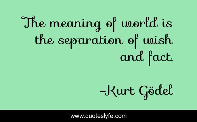 This page presents the quote "The meaning of world is the separation of wish and fact.". Author of this quote is Kurt Gödel. .