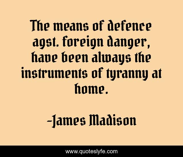 "James Madison Quotes." Quoteslyfe.com, 2025. Fri. 05 Dec. 2025. <https://www.quoteslyfe.com/quote/The-means-of-defence-agst-foreign-danger-52016>.