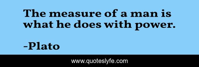 This page presents the quote "The measure of a man is what he does with power.". Author of this quote is Plato. This quote is about character, power,.