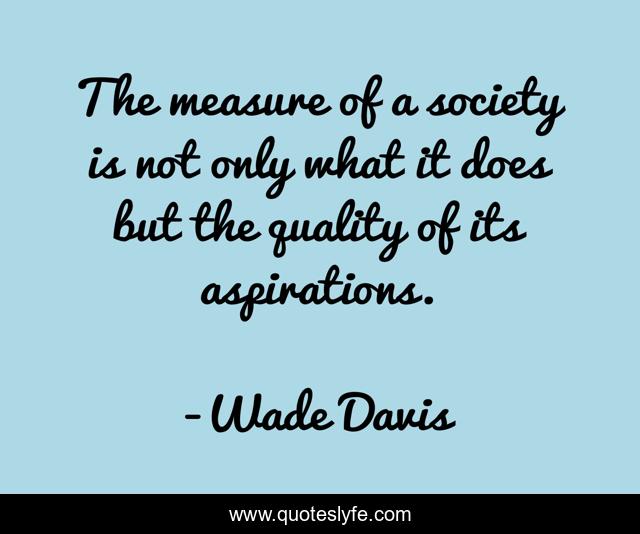 This page presents the quote "The measure of a society is not only what it does but the quality of its aspirations.". Author of this quote is Wade Davis. This quote is about success, ideals, society, goals, aspirations, achievement,.