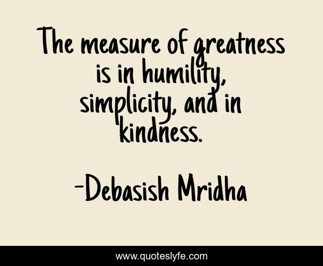 This page presents the quote "The measure of greatness is in humility, simplicity, and in kindness.". Author of this quote is Debasish Mridha. This quote is about life, love, knowledge, inspirational, intelligence, philosophy, wisdom, quotes, affection,.