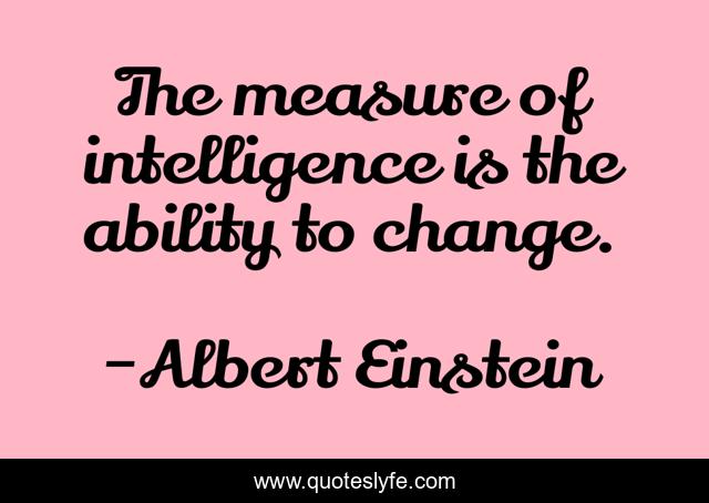 This page presents the quote "The measure of intelligence is the ability to change.". Author of this quote is Albert Einstein. This quote is about open-mindedness, intelligence, flexibility, adaptation, wisdom,.