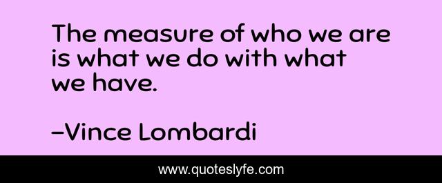 This page presents the quote "The measure of who we are is what we do with what we have.". Author of this quote is Vince Lombardi. .