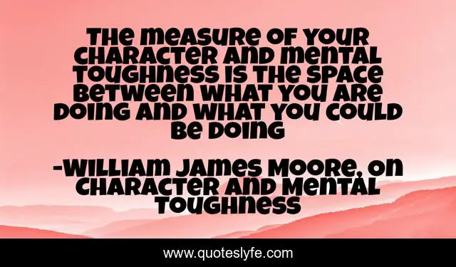 This page presents the quote "The measure of your character and mental toughness is the space between what you are doing and what you could be doing". Author of this quote is William James Moore, On Character and Mental Toughness. This quote is about mental-toughness, character, inspiration,.