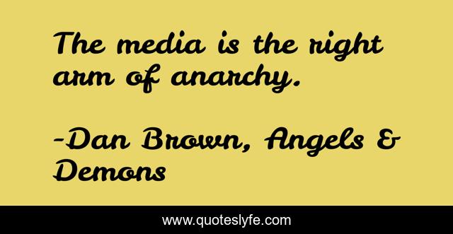 This page presents the quote "The media is the right arm of anarchy.". Author of this quote is Dan Brown, Angels & Demons. .