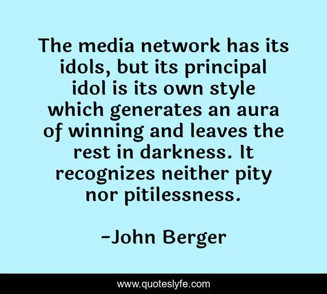 "John Berger Quotes." Quoteslyfe.com, 2025. Mon. 15 Dec. 2025. <https://www.quoteslyfe.com/quote/The-media-network-has-its-idols-but-102392>.