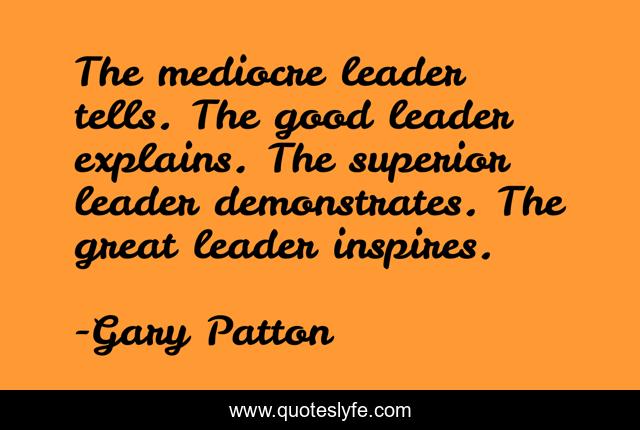 "Gary Patton Quotes." Quoteslyfe.com, 2025. Fri. 05 Dec. 2025. <https://www.quoteslyfe.com/quote/The-mediocre-leader-tells-The-good-leader-210651>.