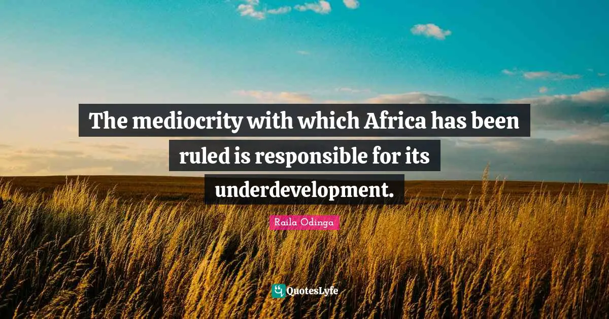 This page presents the quote "The mediocrity with which Africa has been ruled is responsible for its underdevelopment.". Author of this quote is Raila Odinga. This quote is about underdevelopment, mediocrity, responsible,.