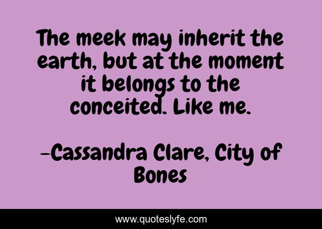 This page presents the quote "The meek may inherit the earth, but at the moment it belongs to the conceited. Like me.". Author of this quote is Cassandra Clare, City of Bones. This quote is about quotes, jace-wayland, humor, city-of-bones,.