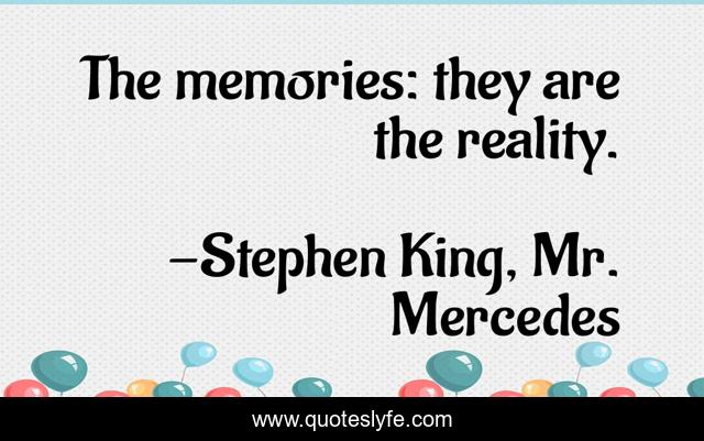 "Stephen King, Mr. Mercedes Quotes." Quoteslyfe.com, 2025. Mon. 08 Dec. 2025. <https://www.quoteslyfe.com/quote/The-memories-they-are-the-reality-93585>.