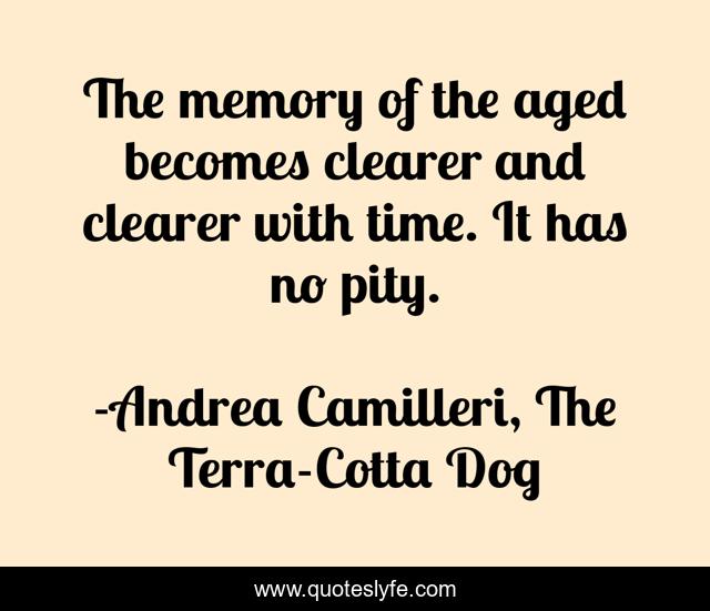This page presents the quote "The memory of the aged becomes clearer and clearer with time. It has no pity.". Author of this quote is Andrea Camilleri, The Terra-Cotta Dog. This quote is about haunting, memory,.