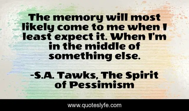 "S.A. Tawks, The Spirit of Pessimism Quotes." Quoteslyfe.com, 2025. Sat. 06 Dec. 2025. <https://www.quoteslyfe.com/quote/The-memory-will-most-likely-come-to-126102>.