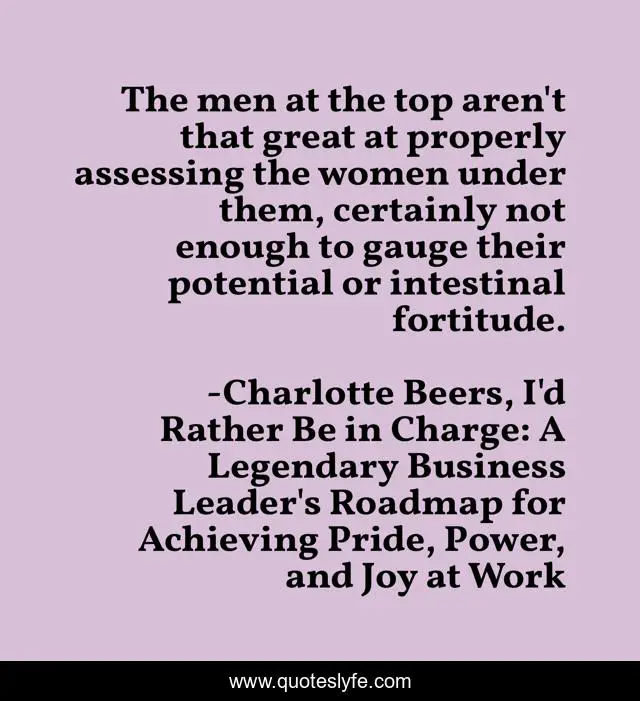 "Charlotte Beers, I'd Rather Be in Charge: A Legendary Business Leader's Roadmap for Achieving Pride, Power, and Joy at Work Quotes." Quoteslyfe.com, 2025. Mon. 08 Dec. 2025. <https://www.quoteslyfe.com/quote/The-men-at-the-top-aren-t-104773>.