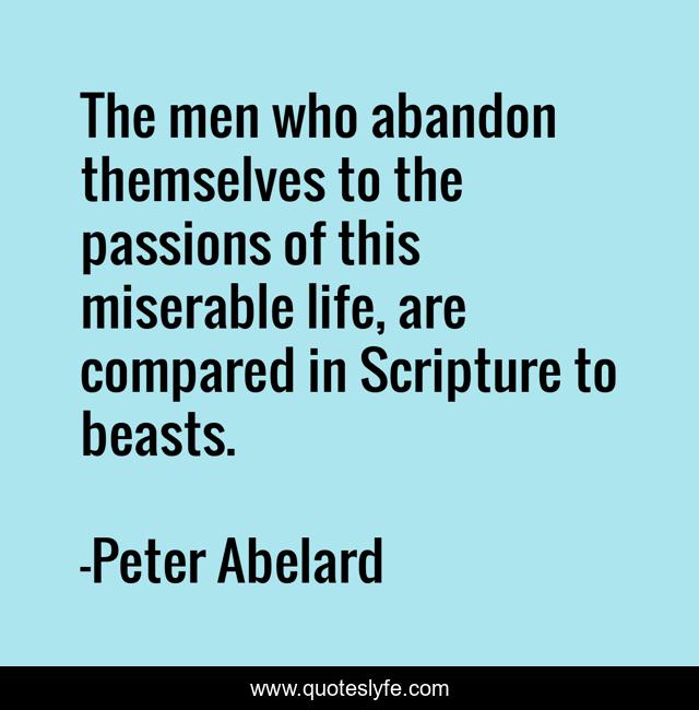 This page presents the quote "The men who abandon themselves to the passions of this miserable life, are compared in Scripture to beasts.". Author of this quote is Peter Abelard. This quote is about miserable, life, themselves,.