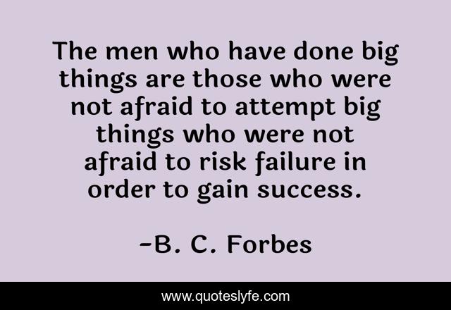 This page presents the quote "The men who have done big things are those who were not afraid to attempt big things who were not afraid to risk failure in order to gain success.". Author of this quote is B. C. Forbes. .