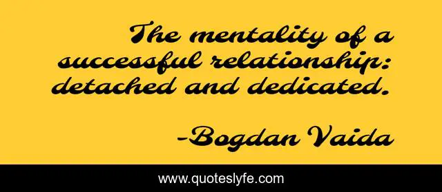 This page presents the quote "The mentality of a successful relationship: detached and dedicated.". Author of this quote is Bogdan Vaida. This quote is about relationships, mentality,.