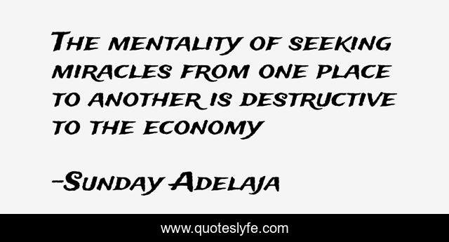 This page presents the quote "The mentality of seeking miracles from one place to another is destructive to the economy". Author of this quote is Sunday Adelaja. This quote is about miracles, distruction, mentality,.