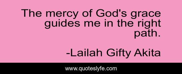 This page presents the quote "The mercy of God's grace guides me in the right path.". Author of this quote is Lailah Gifty Akita. This quote is about god, guidance, grace, inspirational, enthusiasm,.