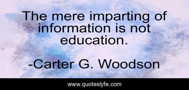 This page presents the quote "The mere imparting of information is not education.". Author of this quote is Carter G. Woodson. This quote is about information, mere, imparting,.