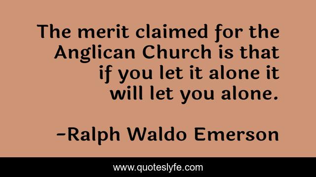 This page presents the quote "The merit claimed for the Anglican Church is that if you let it alone it will let you alone.". Author of this quote is Ralph Waldo Emerson. .