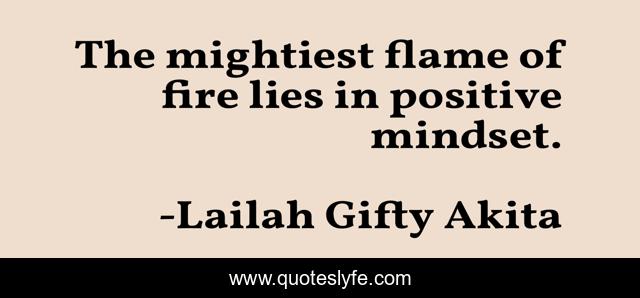 This page presents the quote "The mightiest flame of fire lies in positive mindset.". Author of this quote is Lailah Gifty Akita. This quote is about motivation, mindset, positive-thinking,.