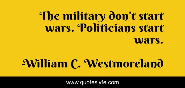 This page presents the quote "The military don't start wars. Politicians start wars.". Author of this quote is William C. Westmoreland. This quote is about military, war, westmoreland,.