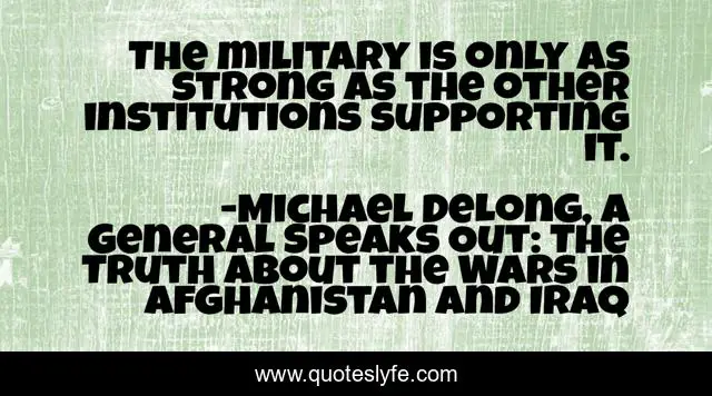 "Michael DeLong, A General Speaks Out: The Truth About the Wars in Afghanistan and Iraq Quotes." Quoteslyfe.com, 2025. Fri. 05 Dec. 2025. <https://www.quoteslyfe.com/quote/The-military-is-only-as-strong-as-104959>.