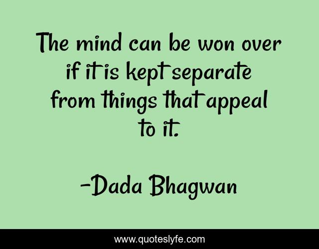 This page presents the quote "The mind can be won over if it is kept separate from things that appeal to it.". Author of this quote is Dada Bhagwan. This quote is about mind, control-the-mind, mind-control, spiritual,.