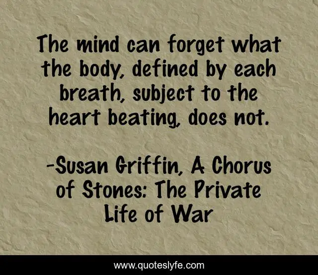 "Susan Griffin, A Chorus of Stones: The Private Life of War Quotes." Quoteslyfe.com, 2025. Fri. 05 Dec. 2025. <https://www.quoteslyfe.com/quote/The-mind-can-forget-what-the-body-52155>.