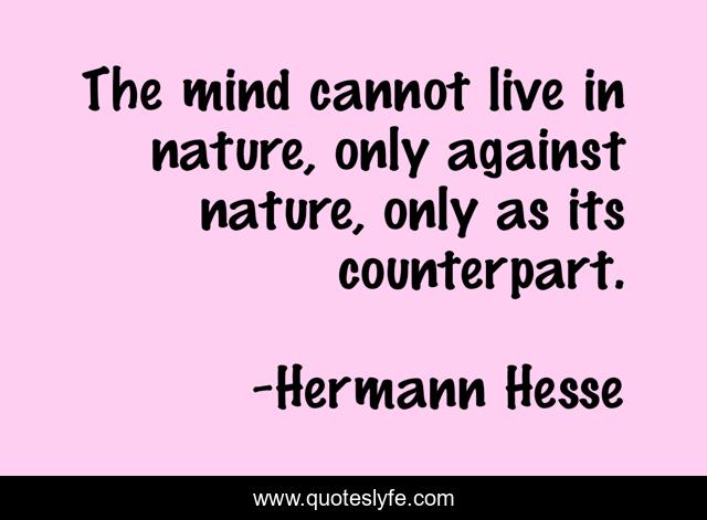 This page presents the quote "The mind cannot live in nature, only against nature, only as its counterpart.". Author of this quote is Hermann Hesse. This quote is about mind, nature,.