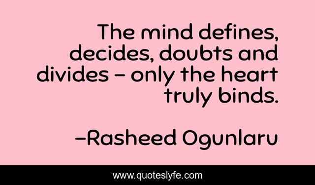 "Rasheed Ogunlaru Quotes." Quoteslyfe.com, 2025. Sat. 06 Dec. 2025. <https://www.quoteslyfe.com/quote/The-mind-defines-decides-doubts-and-divides-99002>.