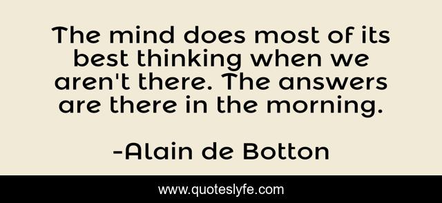 This page presents the quote "The mind does most of its best thinking when we aren't there. The answers are there in the morning.". Author of this quote is Alain de Botton. This quote is about thinking, mind, answers, subconscious, brain, questions,.