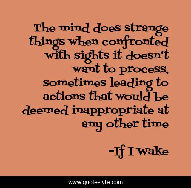 This page presents the quote "The mind does strange things when confronted with sights it doesn’t want to process, sometimes leading to actions that would be deemed inappropriate at any other time". Author of this quote is If I Wake. This quote is about action, mind,.