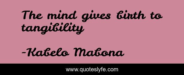 This page presents the quote "The mind gives birth to tangibility". Author of this quote is Kabelo Mabona. This quote is about mind, tangibility, birth,.