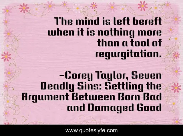 "Corey Taylor, Seven Deadly Sins: Settling the Argument Between Born Bad and Damaged Good Quotes." Quoteslyfe.com, 2025. Sat. 06 Dec. 2025. <https://www.quoteslyfe.com/quote/The-mind-is-left-bereft-when-it-86794>.