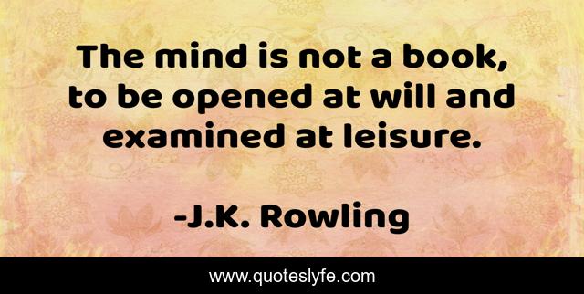 This page presents the quote "The mind is not a book, to be opened at will and examined at leisure.". Author of this quote is J.K. Rowling. This quote is about book, mind,.