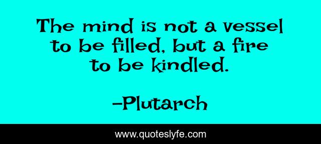 This page presents the quote "The mind is not a vessel to be filled, but a fire to be kindled.". Author of this quote is Plutarch. This quote is about thinking, mentoring, education, mind, curiosity,.