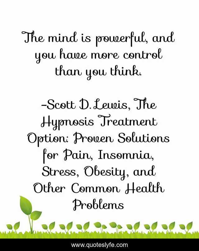 "Scott D. Lewis, The Hypnosis Treatment Option: Proven Solutions for Pain, Insomnia, Stress, Obesity, and Other Common Health Problems Quotes." Quoteslyfe.com, 2025. Mon. 08 Dec. 2025. <https://www.quoteslyfe.com/quote/The-mind-is-powerful-and-you-have-208307>.