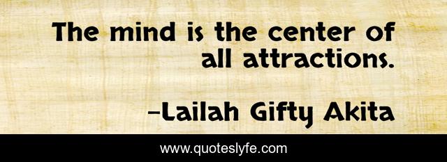 This page presents the quote "The mind is the center of all attractions.". Author of this quote is Lailah Gifty Akita. This quote is about positive-motivation, wisdom-of-lailah-gifty-akita, wishes, positive-thoughts, mind-power, dreams,.