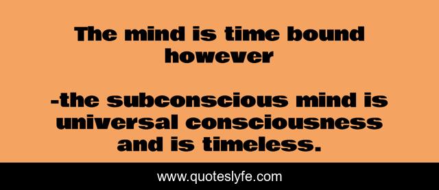 "the subconscious mind is universal consciousness and is timeless. Quotes." Quoteslyfe.com, 2025. Sat. 06 Dec. 2025. <https://www.quoteslyfe.com/quote/The-mind-is-time-bound-however-75125>.