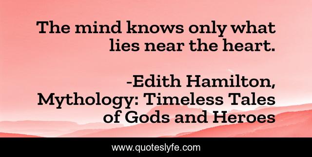 This page presents the quote "The mind knows only what lies near the heart.". Author of this quote is Edith Hamilton, Mythology: Timeless Tales of Gods and Heroes. This quote is about heart, mind,.