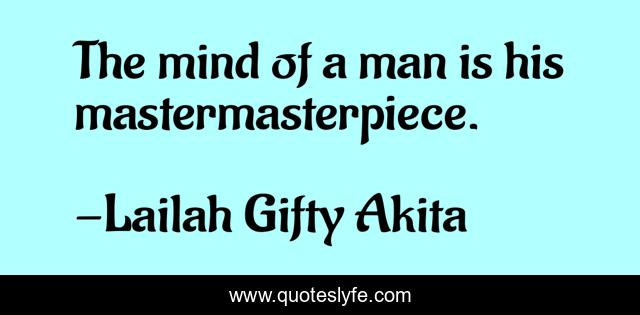 This page presents the quote "The mind of a man is his mastermasterpiece.". Author of this quote is Lailah Gifty Akita. This quote is about mind-power, positive-outlook, mind, inspiration, man,.