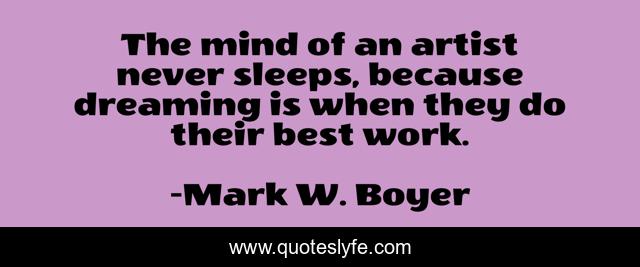 "Mark W. Boyer Quotes." Quoteslyfe.com, 2025. Mon. 08 Dec. 2025. <https://www.quoteslyfe.com/quote/The-mind-of-an-artist-never-sleeps-141098>.