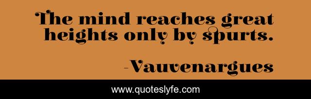 This page presents the quote "The mind reaches great heights only by spurts.". Author of this quote is Vauvenargues. .