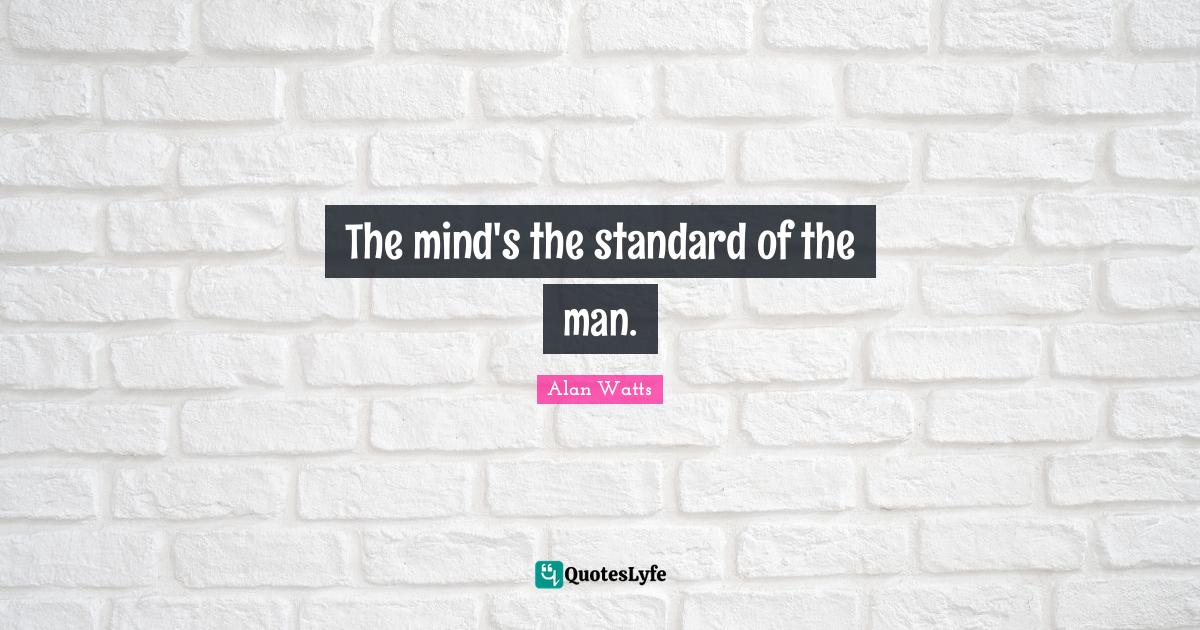 This page presents the quote "The mind's the standard of the man.". Author of this quote is Alan Watts. This quote is about he man, men, mind,.