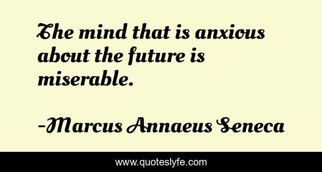 This page presents the quote "The mind that is anxious about the future is miserable.". Author of this quote is Marcus Annaeus Seneca. This quote is about future, anxiety,.