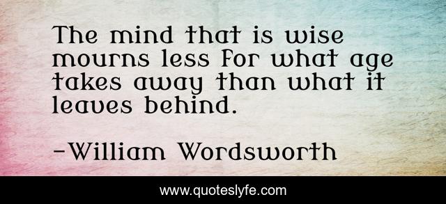 This page presents the quote "The mind that is wise mourns less for what age takes away than what it leaves behind.". Author of this quote is William Wordsworth. This quote is about wise, behind, mind,.