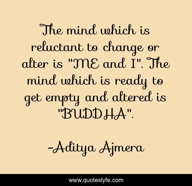 This page presents the quote "The mind which is reluctant to change or alter is "ME and I". The mind which is ready to get empty and altered is "BUDDHA".". Author of this quote is Aditya Ajmera. This quote is about buddha-nature, mind, alter, mindfulness,.