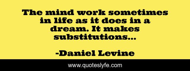 This page presents the quote "The mind work sometimes in life as it does in a dream. It makes substitutions...". Author of this quote is Daniel Levine. This quote is about dream, mind, dreams,.