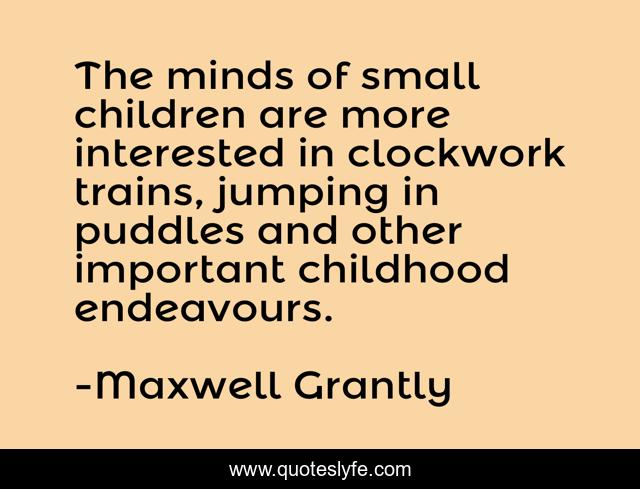 This page presents the quote "The minds of small children are more interested in clockwork trains, jumping in puddles and other important childhood endeavours.". Author of this quote is Maxwell Grantly. This quote is about children, minds,.